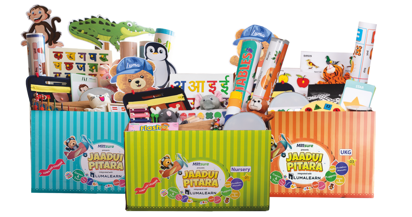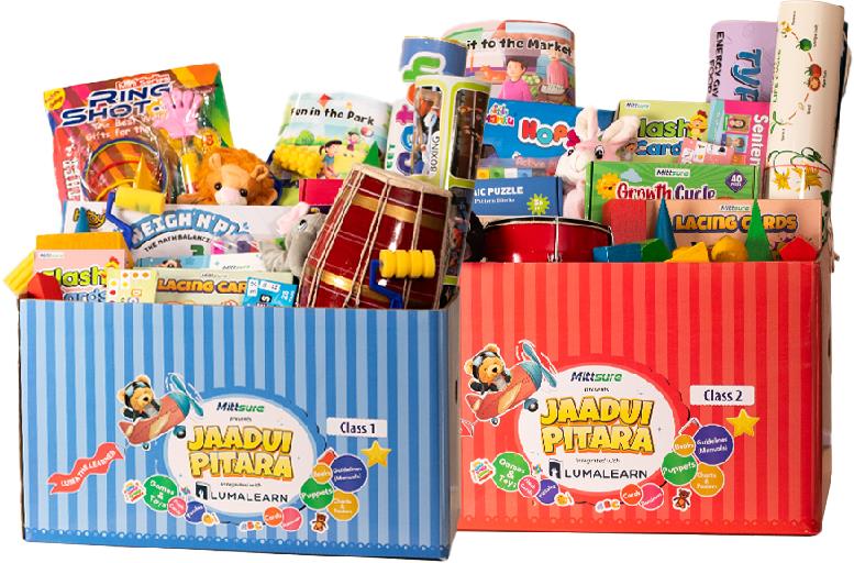 Jaadui Pitara was first introduced as an idea by Shri Dharmendra Pradhan, with the aim of making early education more joyful, hands-on, and connected to real experiences. Taking this vision forward, Mittsure has created its own Jaadui Pitara kits, inspired by NCERT, for children in Nursery, LKG, UKG, Class 1 and Class 2. Every kit is designed in line with Lumalearn, so children don’t just study - they explore, play and learn naturally.